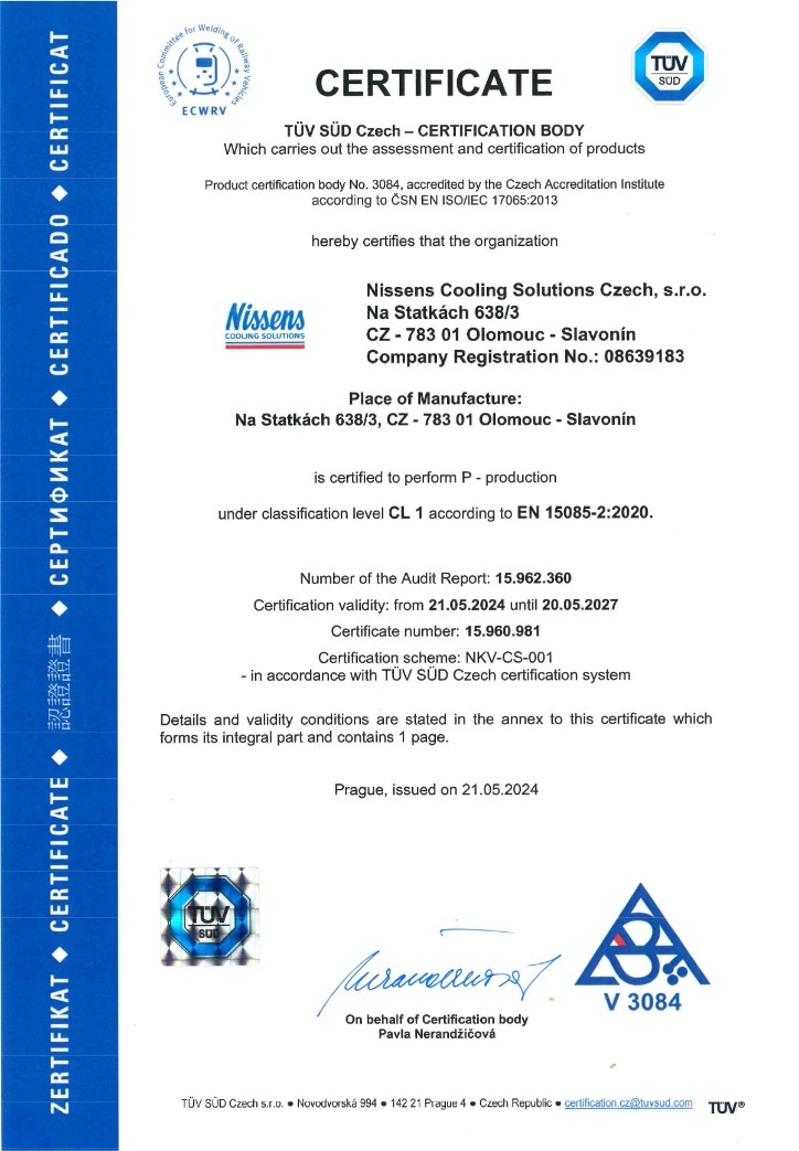 Nissens Cooling Solutions’ position as the leading cooling solutions provider in the world and the preferred cooling supplier to the renewable energy segment and a large variety of industrial applications is documented in terms of renowned quality certifications.